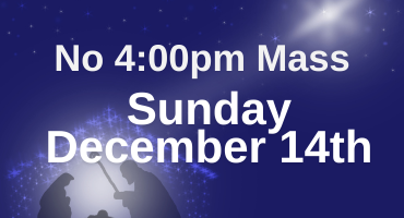 Due to the Christmas Concert, the 4:00 pm Mass on Sunday December 14th is canceled.